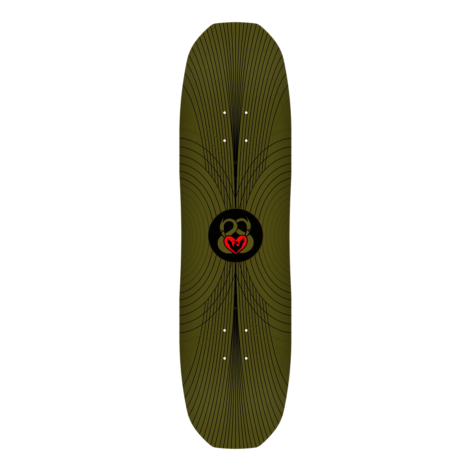 While the Vajra shape was a challenge to develop, this one came easily to Andy. Reminiscent of the original Heron shape but smaller and symmetrical, it measures 8.25" at the waist, just under 8.5" at the widest, and has a 14.25" wheelbase. The square edge and slightly curved nose and tail deliver solid, stable pop, while the K26 concave and inner cuts create a front-foot pocket that makes Tre Flips and Varial Heelflips easier to flick. With its streamlined shape, pop, and responsive feel, the Hydrant shape is solid gold.