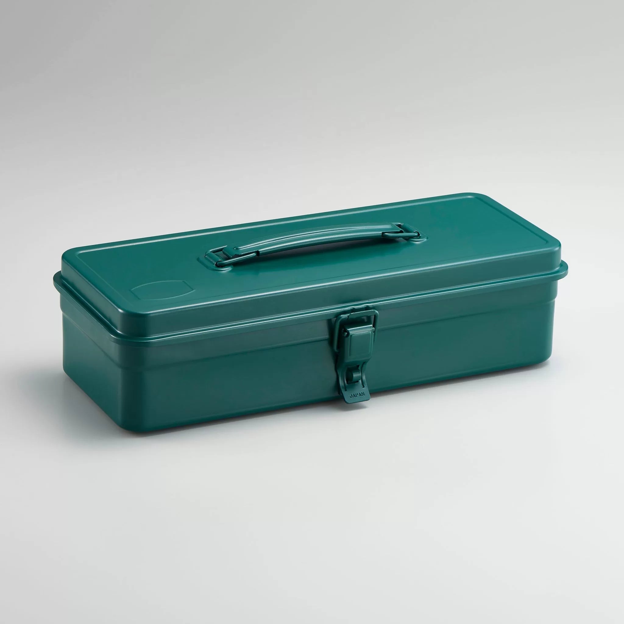 Steel toolbox with camber lid and top extendable handle. Produced from one piece of steel, resulting in water-tightness, no sharp edges and unmatched strength. Use for tools, art supplies, make-up - the possibilities are endless!